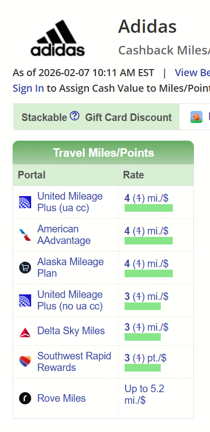 For example, here’s Adidas. It notes that not only can you earn 4 points with Alaska, but also with lots of other airlines as well.