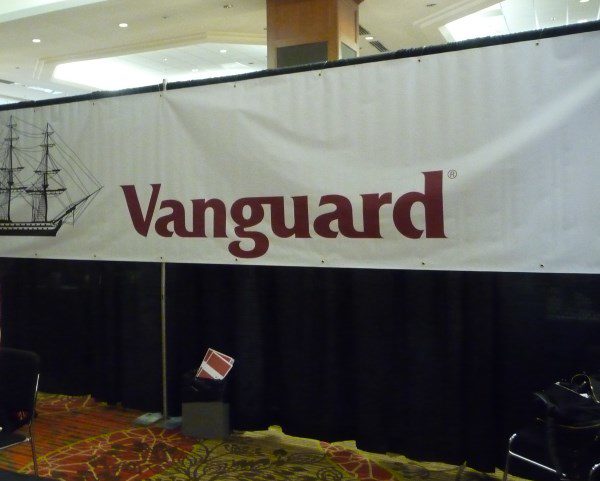 Vanguard is in the business of returning value, and there would be less money to do that if they were bringing 3-D printers and hosting lounges and cash grab booths and whatever else the other companies were doing. (Yes, there was an actual cash grab booth there from another vendor.)