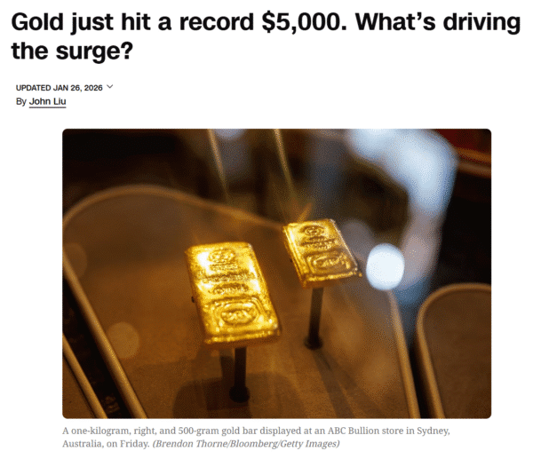 And gold has been very much in the media recently, especially since it’s rise above $5,000. To me, that’s the sign that the boom times have ended. The people who really benefit got in before everyone started talking about it.