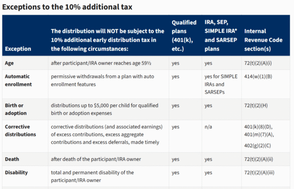 There is an exception to withdrawals netting that 10% penalty, and that’s a hardship distribution.