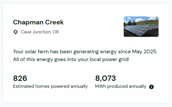 This is one of 29 (to date) solar farms in Oregon, with a current expected MWh of over 120,000. Think about just how much energy that is that wasn’t produced by oil or gas.