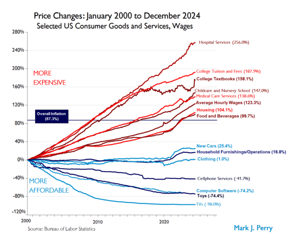 I use the “chart of the century” to show that not everything has gone up in price, outpacing inflation, just the important things.