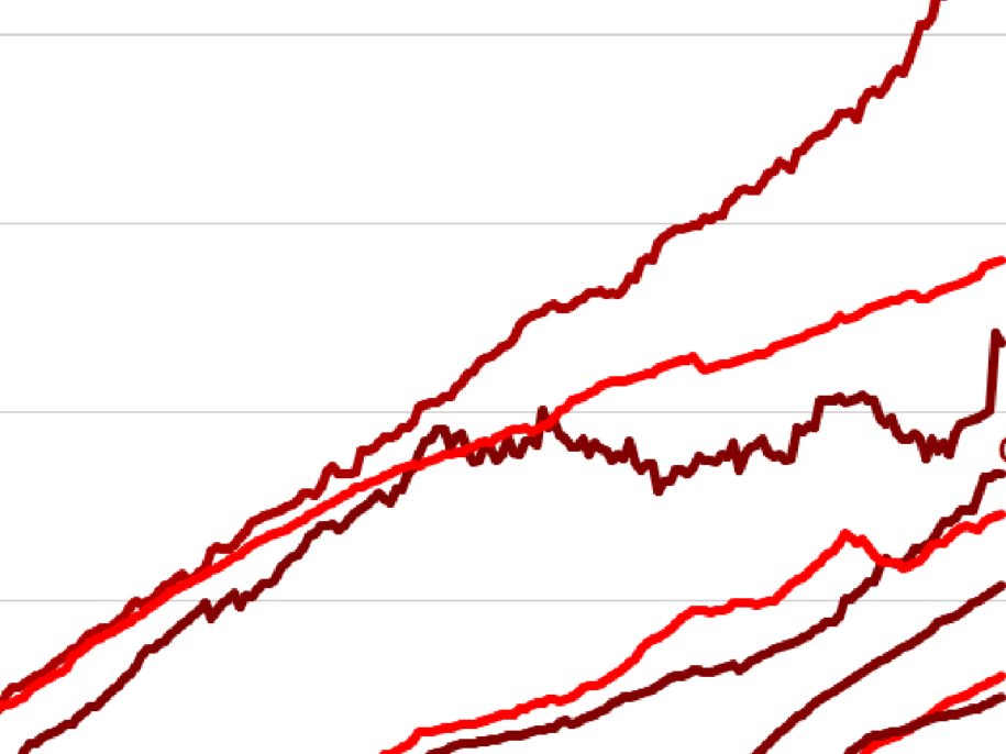 But from that point, literally everything diverges. The red lines have outpaced inflation, while the blue lines have run behind inflation, and in some cases actually gotten less expensive.