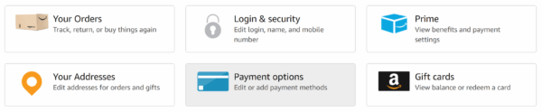 Payment Options - You need to add your prepaid/gift card to your account. Scroll down to the bottom and click “Add a card”.