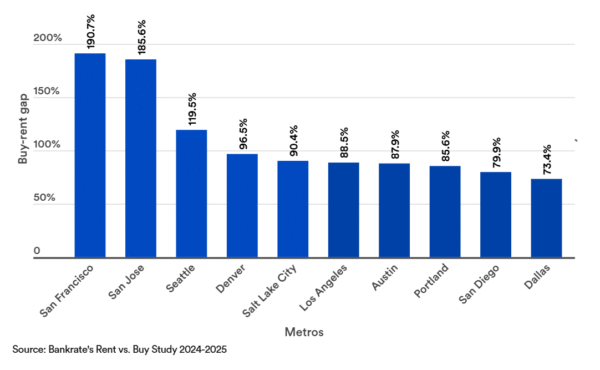 Now, this varied based on which areas were being talked about. For example, west coast metro areas had the biggest gap, with places like San Francisco and even Portland being 191% and 86% higher, respectively.