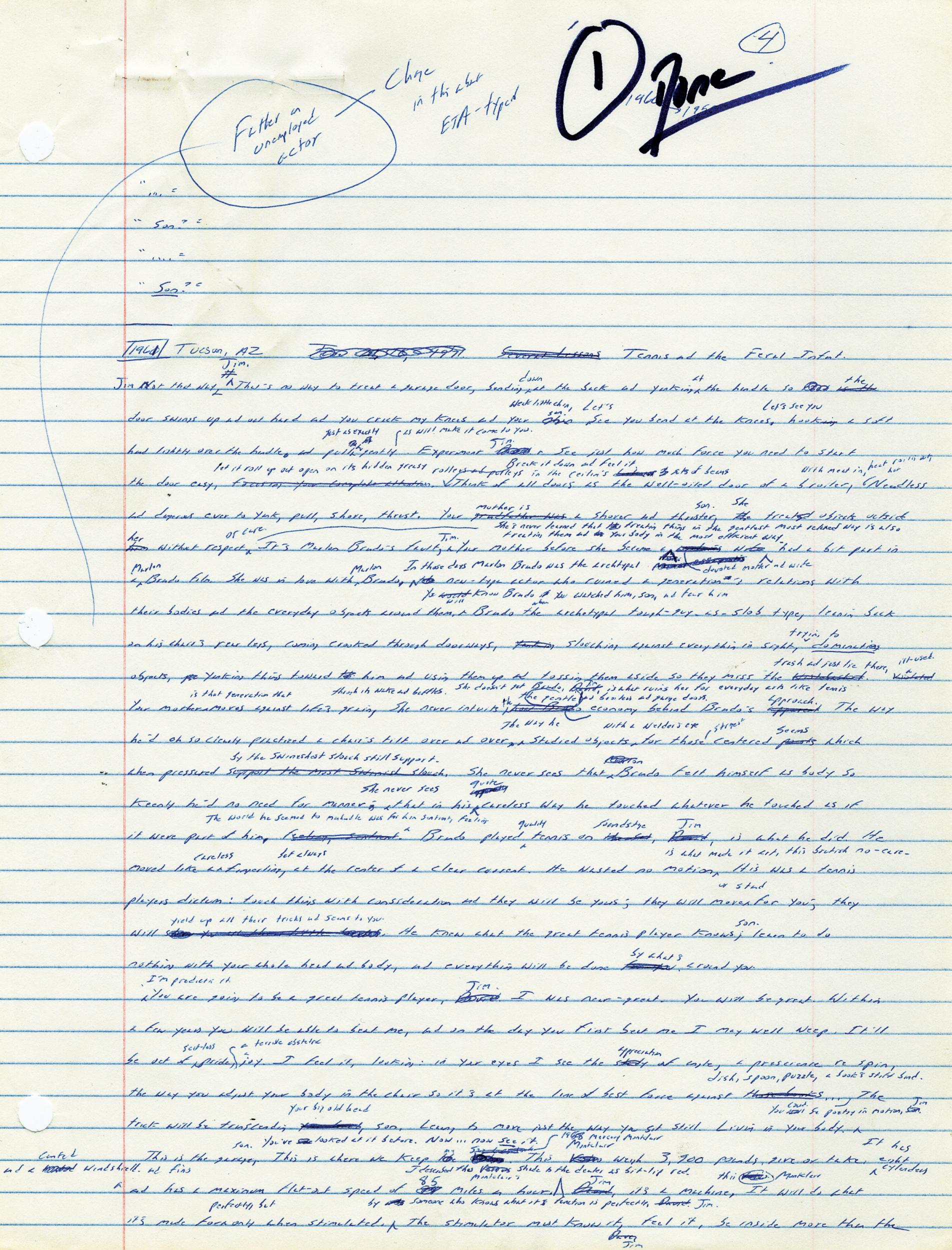 The writing writing [repetition intentional] that I do is longhand…The first two or three drafts are always longhand…I can type very much faster than I can write. And writing makes me slow down in a way that helps me pay attention.