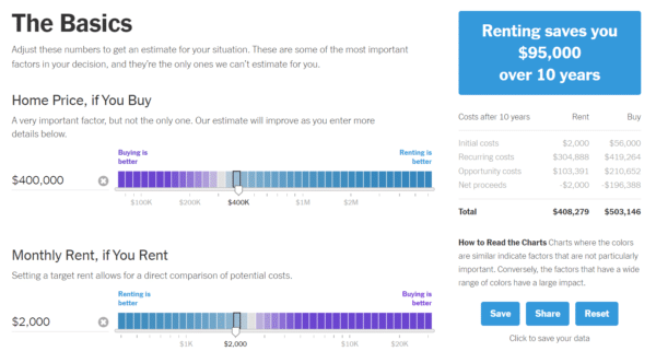 The New York Times has, since 2014, stepped in to put their spin on the matter, creating a “Buy/Rent Calculator” on their site.