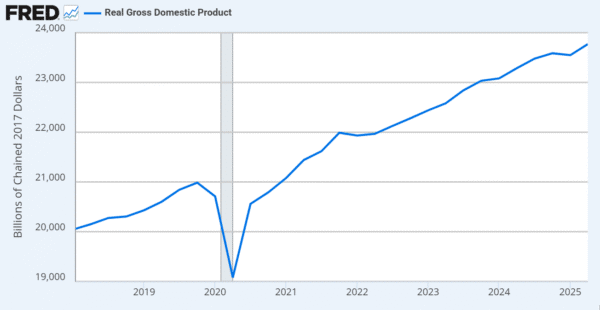 Now granted, GDP is a pretty terrible way to measure the economy, as it measures bad activity as well as good. If I took a pile a rocks and moved all of them from one side of a field to the other, and then back again, I would have accomplished nothing (though maybe broken a sweat), but GDP would show two positive actions.