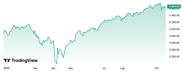 Meanwhile, the stock market is still rising too. Just look at this chart of the S&P 500: